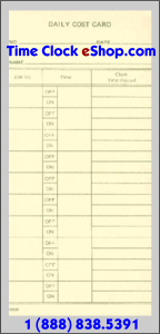 Form 25530 Daily Job Cost Time Cards - Form #25530 Daily Job Cost Card- Time Card for Side Print Time Recorders-1000 Cards per Box/$44.00 -- Time Clock eShop.com